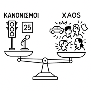 Η επιλογή, λοιπόν, είναι καθαρή: κανονισμοί ή χάος; Κι αν το δούμε πρακτικά, η απάντηση είναι ήδη μπροστά μας, κάθε φορά που διασχίζουμε έναν δρόμο με πράσινο φανάρι, κάθε φορά που παίρνουμε ένα νούμερο προτεραιότητας, κάθε φορά που ένα δημοτικό συμβούλιο καταφέρνει να συνεδριάσει και να αποφασίσει οργανωμένα. Οι κανόνες είναι το κλειδί για μια ζωή πιο οργανωμένη, πιο δίκαιη και –το σημαντικότερο– πιο ανθρώπινη.